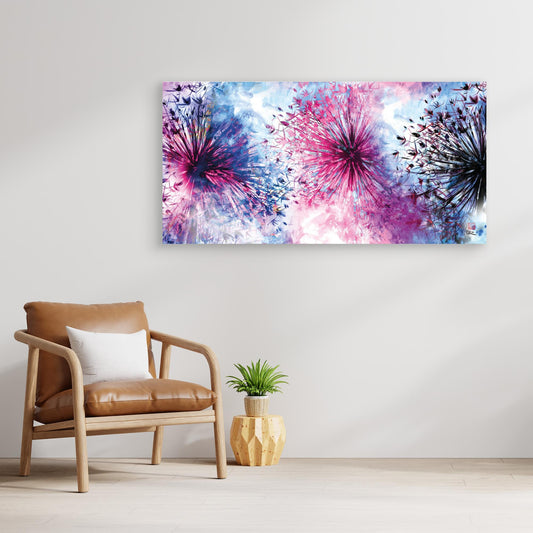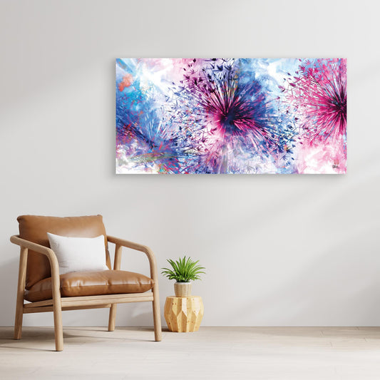 This allium pink sunshine canvas print from the Sumi range is inspired by the delicate beauty of allium flower heads. Its design features an abstract pattern of interlocking flowers in pinks and blues. Canvas print details Our premium canvas prints are crafted using museum-quality giclée printing technology,...