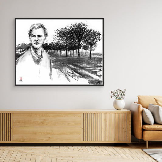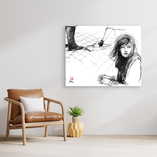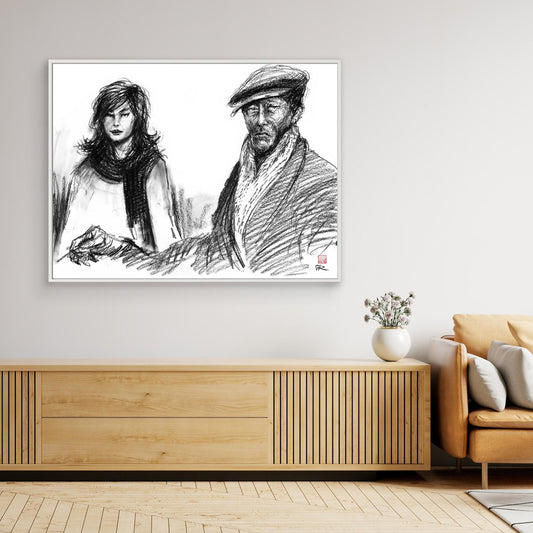 Canvas print of a drawing in charcoal from a scene in the film Red dessert directed by Michelangelo Antonioni and starring Monica Vitti and Richard Harris. Written by Antonioni and Tonino Guerra, it was Antonioni's first color film. Set...