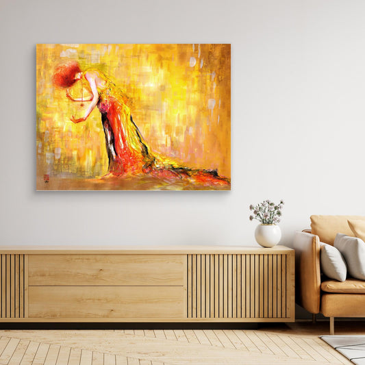 This canvas print captures the fluid motion and emotion of dancers inspired by falling snow. Created with sweeping strokes using Chinese brushes and Japanese inks on large Fabriano paper, it reflects the unique energy of dancers of all ages. The artwork embodies subtle complexity and graceful expression, making it a...