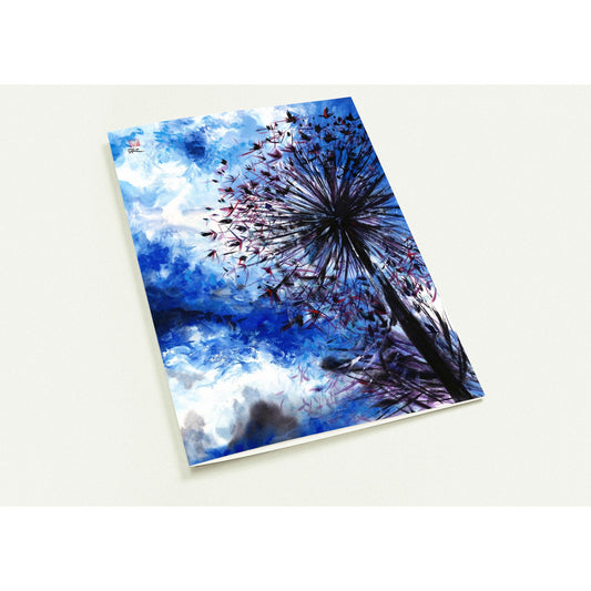 Allium blue sunshine card design. This fine art paper print is a reproduction of a botanical painting of alliums in my garden. The original painting was created using Chinese ink techniques on traditional Sumi paper. These beautiful folded cards are blank for you to send a hand written message for...