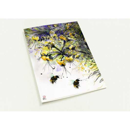 Honeysuckle and bees is a reproduction of a painting which captures the delicate beauty of bees on honeysuckle during the summer. The image was painted in ink and traditional Chinese watercolours on authentic Sumi paper. These beautiful folded cards are blank for you to send a hand written message for...