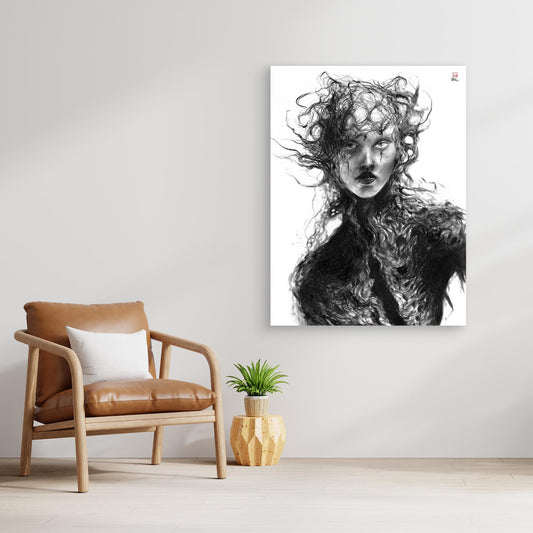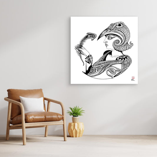 Canvas print of 'Juno' from the Myth series drawn with dip pen and ink. A series of 8 illustrations based on stories from Greek myth. Our premium canvas prints are crafted using museum-quality giclée printing technology, ensuring exceptional detail and color accuracy that brings your artwork to life....