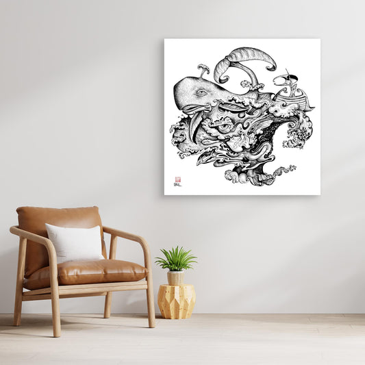 Canvas print of Oceanus from the Greek myth collection. Oceanus, god of the ocean was hand drawn by William Rowsell using a simple dip pen and ink on board. One of a series of 8 designs in the collection. Our premium canvas prints are crafted using museum-quality giclée...