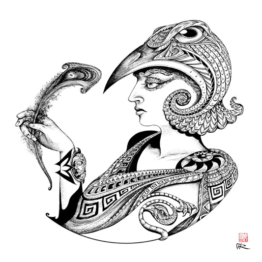 Canvas print of 'Juno' from the Myth series drawn with dip pen and ink. A series of 8 illustrations based on stories from Greek myth. Our premium canvas prints are crafted using museum-quality giclée printing technology, ensuring exceptional detail and color accuracy that brings your artwork to life....