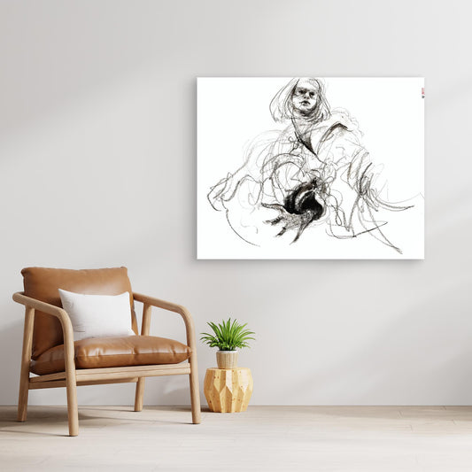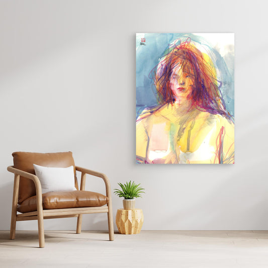 Canvas print of a portrait of Kate from life drawing. Original is painted in watercolor, inks and colored pencil on AO watercolor paper. Drawn at Lewnor life drawing in June 2025. Canvas print details Poly-cotton blend canvas with a matte/satin finish. Scratch, crack, and warp resistant. Vibrant,...
