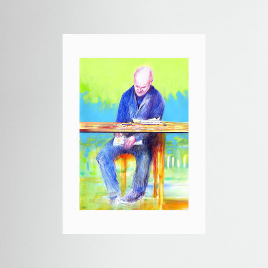 This exquisite portrait of Rupert captures a candid moment as he is engrossed in drawing within the classroom at Newlyn Art School. The artist skillfully rendered this scene using colored pencil, acrylic inks, and gouache on high-quality A3 Fabriano Academia paper, highlighting both fine detail and subtle textures. The paper...
