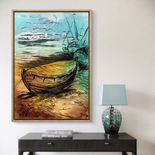 Dieser Leinwanddruck ist eine Reproduktion einer Radierung eines „Norfolk-Krabbenbootes – Ausgabe 2“, die ich in einer Skizze festgehalten habe, als ich auf dem Küstenweg zwischen Blakeney und Cley an der Nordküste von Norfolk entlangging. Inspiration Ich entdeckte dieses im Schlamm gestrandete Boot bei einem Spaziergang durch...
