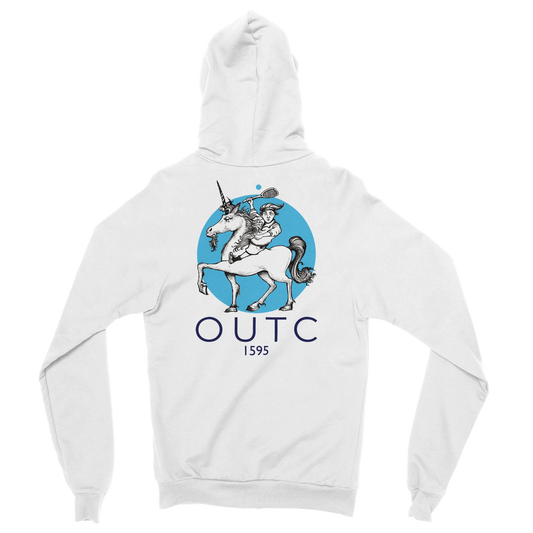 This premium unisex heavyweight hoodie in white features a Senior Unicorn Club logo design front and back. This super soft hoodie ensures ultimate comfort on and off court. Designed with a unisex fit suitable for all. Product details Premium pullover hoodie properties: OUTC logo: Printed on front...