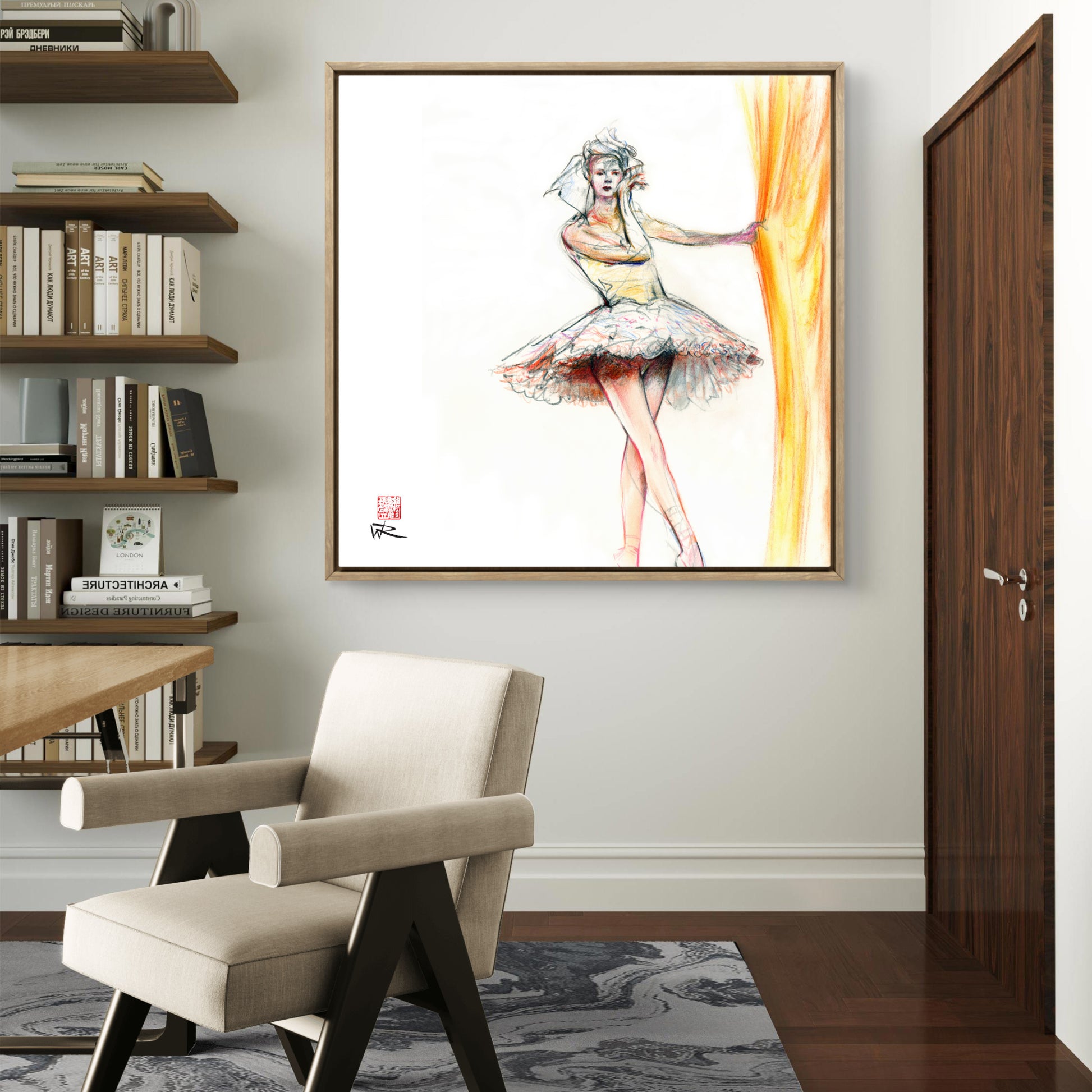 This fine art paper print is a reproduction of a drawing of Ballerina's curtain call. From an original drawing of a ballerina rendered in coloured pencil and soft pastel on paper.