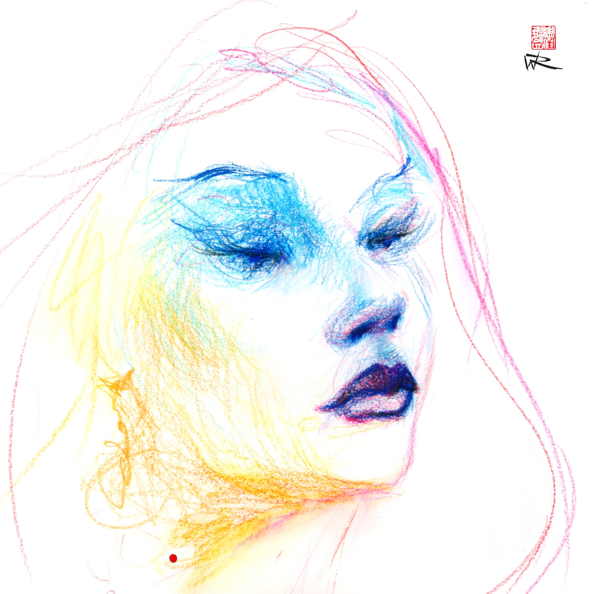 This paper print is a reproduction of 'Blood red necklace'. It evokes a striking vampire-inspired theme, created using inks and coloured pencils on paper.