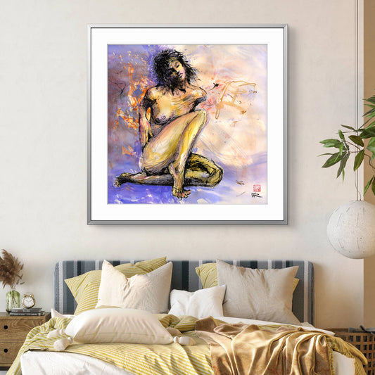 This original figure painting was created from working with abstraction using mand made reed pens and ink on lining paper. Created multiple layers of texture and found pattern that informed the development of the figure in space. The inspiration The artwork captures a figure emerging intuitively from a backdrop of...