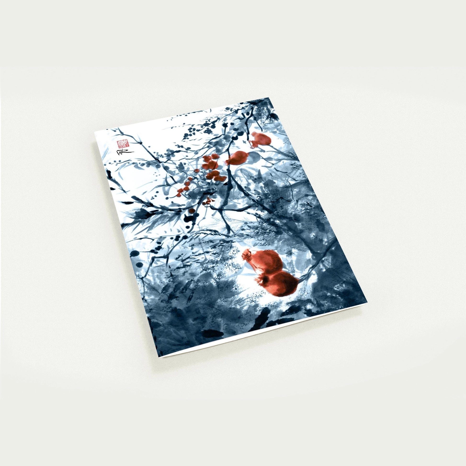 This September rosehips greeting cards design is a reproduction of a painting created using Chinese ink techniques on traditional Sumi paper. These beautiful folded cards are blank for you to send a hand written message for any occasion.