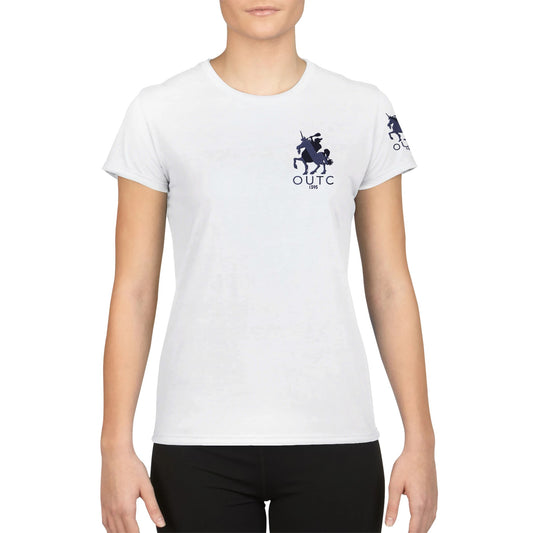 This white women's t-shirt is perfect for high performance activities such as playing real tennis. This lightweight breathable t-shirt has moisture-wicking PosiCharge fabric and is perfect for keeping you dry during play. The shirt features a new Senior Unicorn Club logo embroidered on front left and left shoulder sleeve. ...