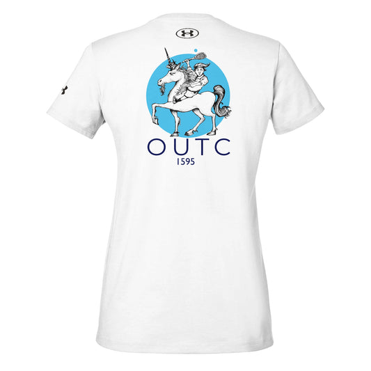 White women's athletic crewneck t-shirt - Underarmour 1383284. Featuring the Senior Unicorn Club branding on front and back. Product details This shirt is designed for optimal training performance, offering a lightweight and breathable feel. Made up of 60% cotton and 40% polyester. Keeps the wearer cool during intense activities....