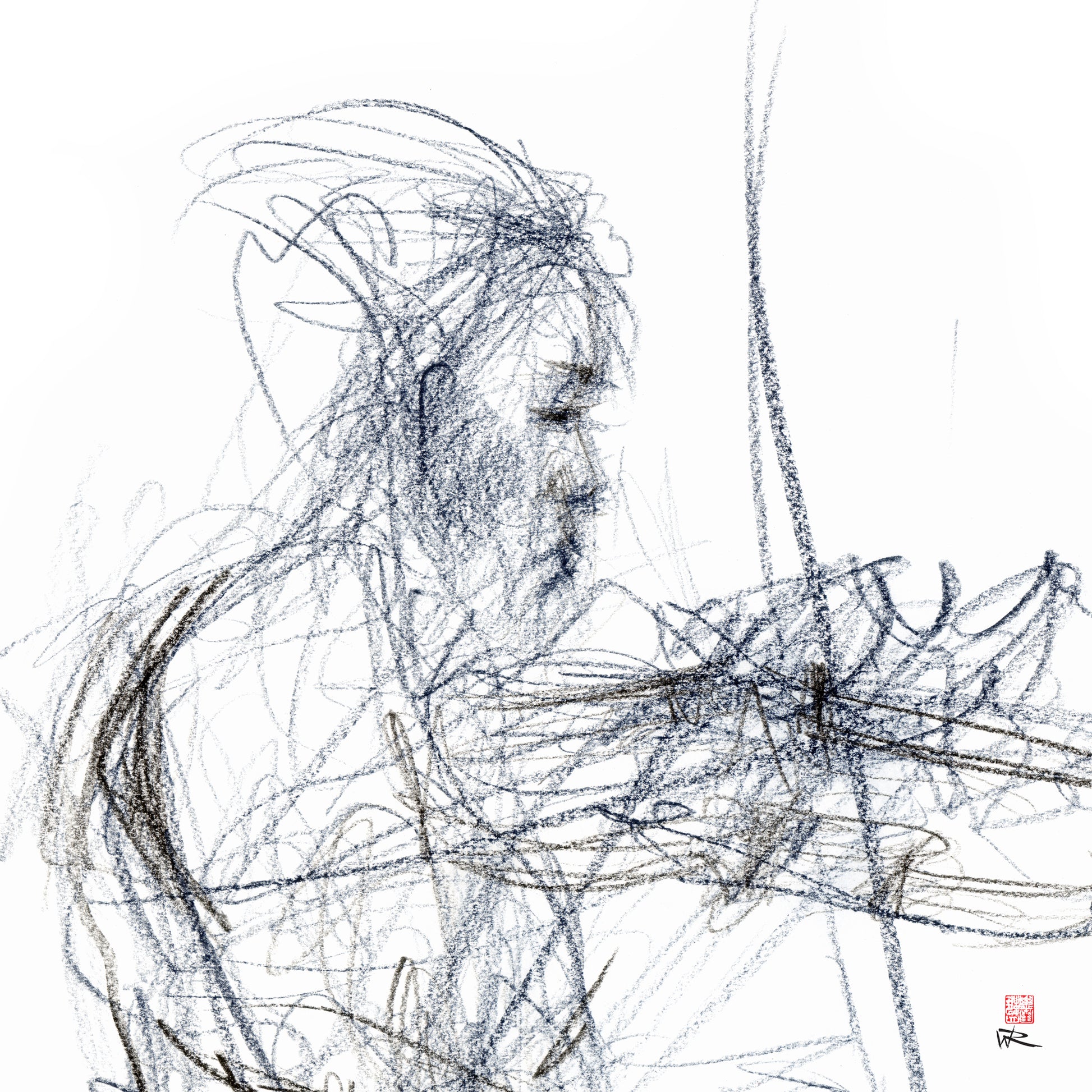 I draw live at music concerts and sat very close to Charlotte as she played violin at the West Wycombe Chamber festival. My drawing responds directly to the musician's expression and captures their physical movement.