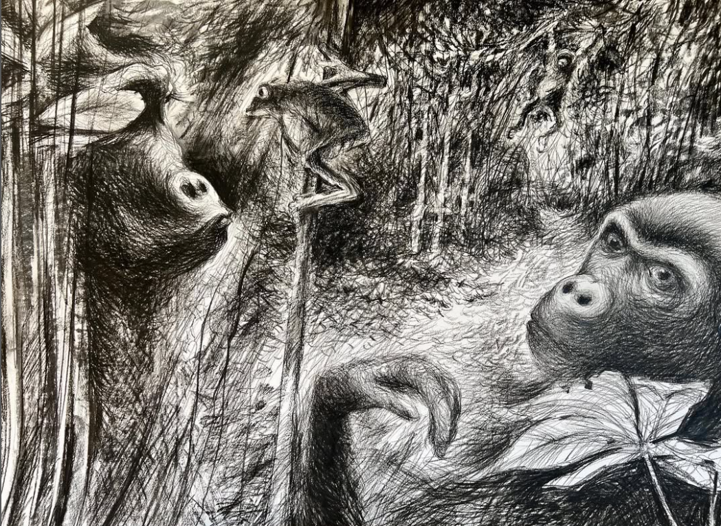 I first knew that drawing was going to be important to me when I went on a school art trip to Chester Zoo. I found the monkey house and came across a bored chimpanzee who eyed me with interest. I sat opposite him and started drawing. He was intrigued by this strange human who was moving a stick around a piece of paper. I remember that day as the first step in my artistic journey. Drawing fascilitated this and over the years I have found that it has opened my life to connections to people and places that no other activity allows. The core of that visual and mental enquiry remains today whether I am drawing a dance class or in the landscape.