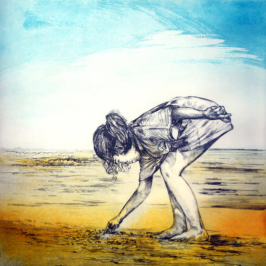 Image: My daughter Izzy beachcombing, etching (2 plates)