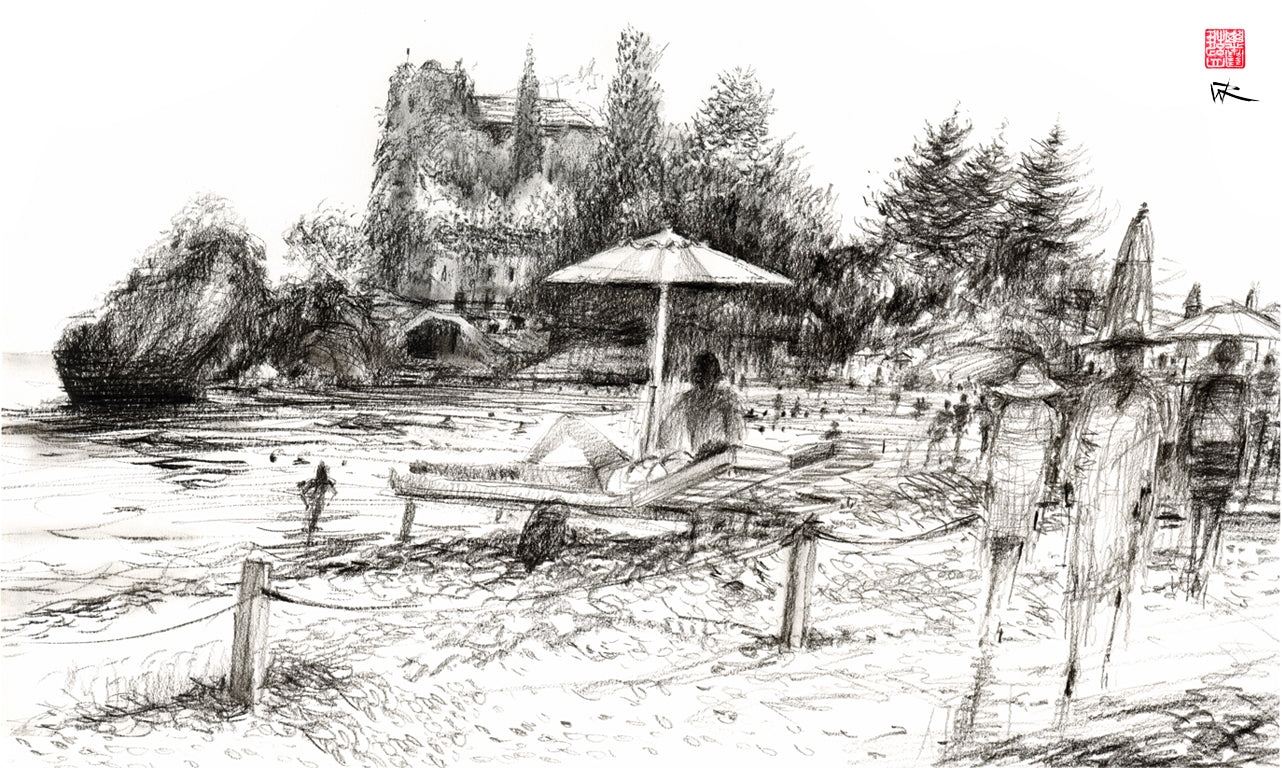 Image: Charcoal drawing (A3) of Isola Bella island off Taormina, Italy