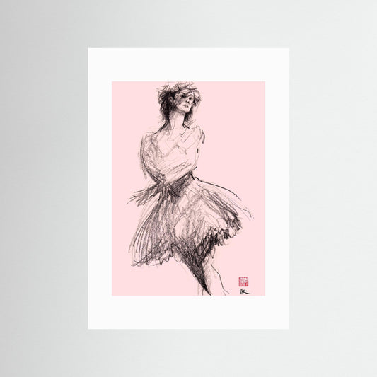 This fine art paper print is a reproduction of a drawing of a ballet dancer in a graceful ballet pose. It was rendered in black coloured pencil on pink paper. Inspiration This drawing is from a session with Drawing Cabaret Couture who feature regular drawing themes. This one focussed...