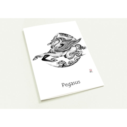 These greeting cards are a reproduction of an ink drawing of the Pegasus. As part of the Greek Myth collection this is one of eight exquisite illustrations, meticulously crafted by hand using a dip pen and black Indian ink on board. These beautiful, folded cards are blank for you to...