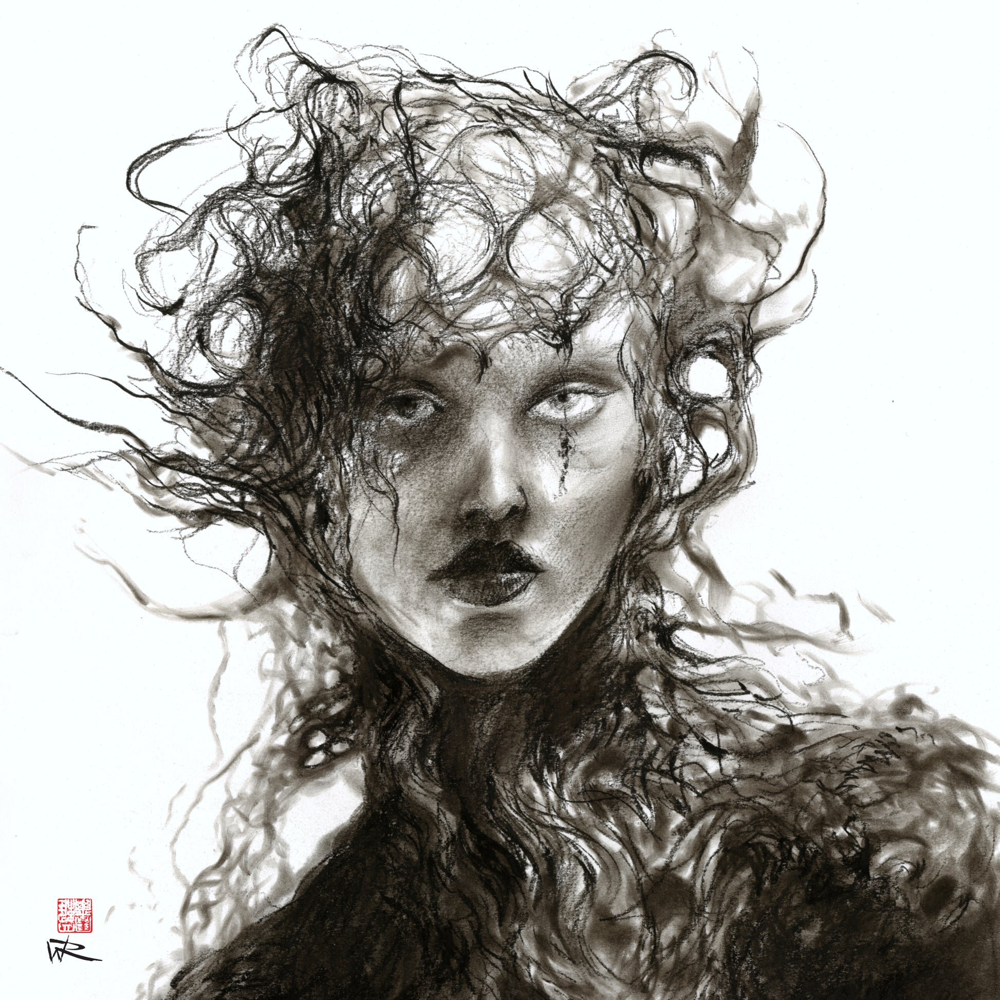 This canvas print is a reproduction of a charcoal drawing of Cursed spirit. Rendered in a range of charcoals on paper I explored the spirit metaphor in this figurative drawing.