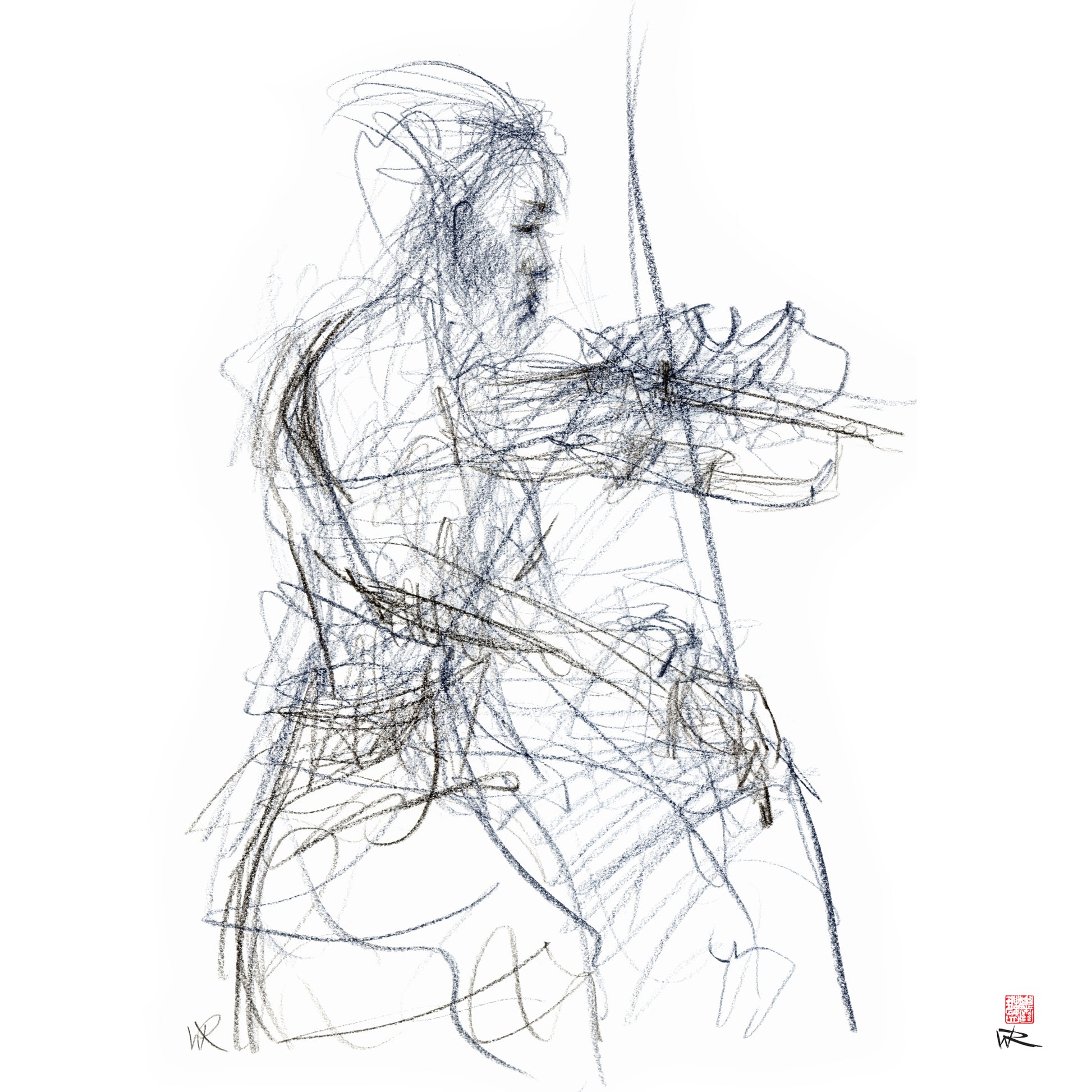 I draw when I experience moments in life that I take notice of and they raise the hairs on the back of my neck! I see the beauty of the drape and pattern of a fabric following the shape of a figure. The rhythms, colours and shapes changed by weather and light in a landscape. A musician or dancers’ expression and movement that connects with me during a performance.